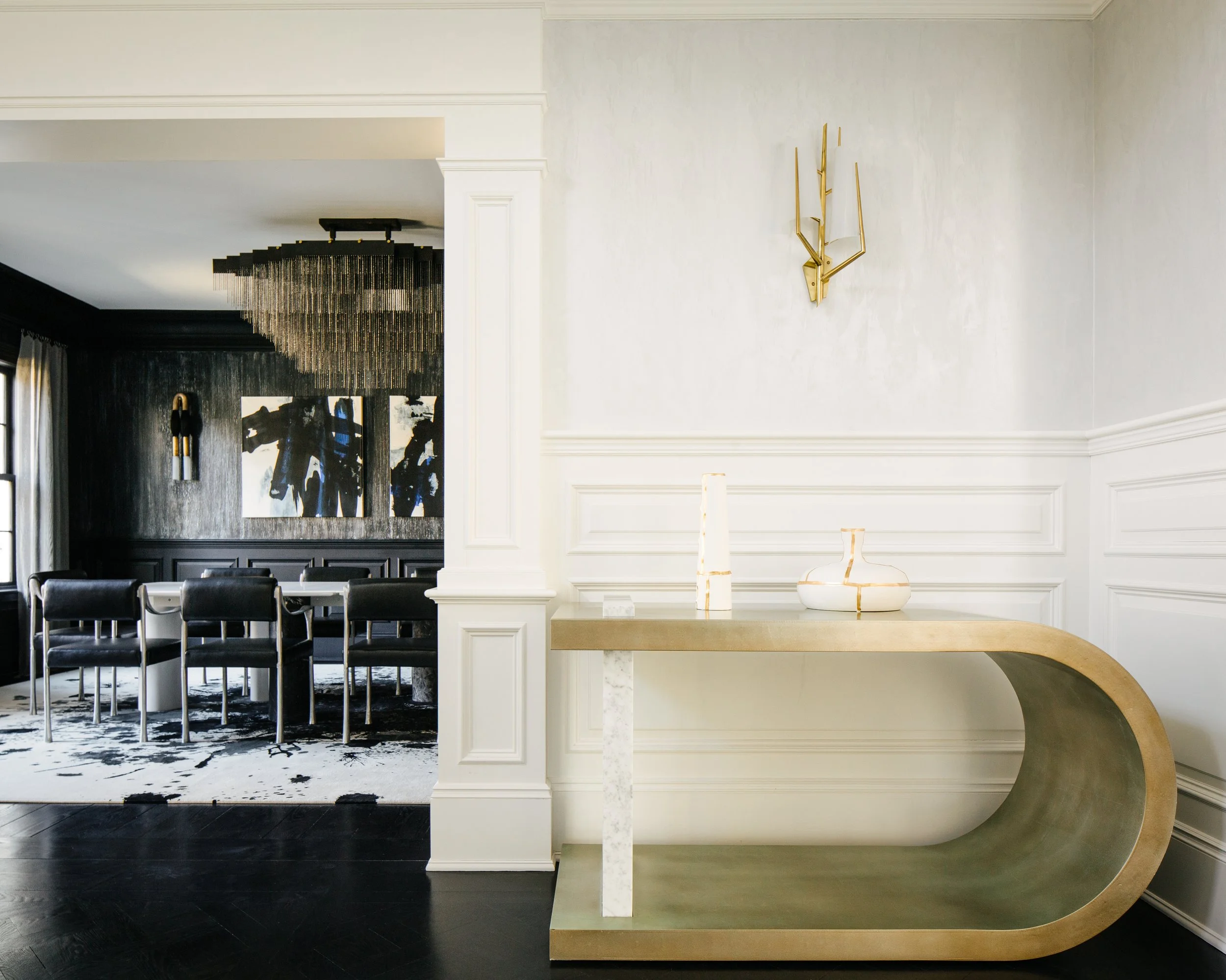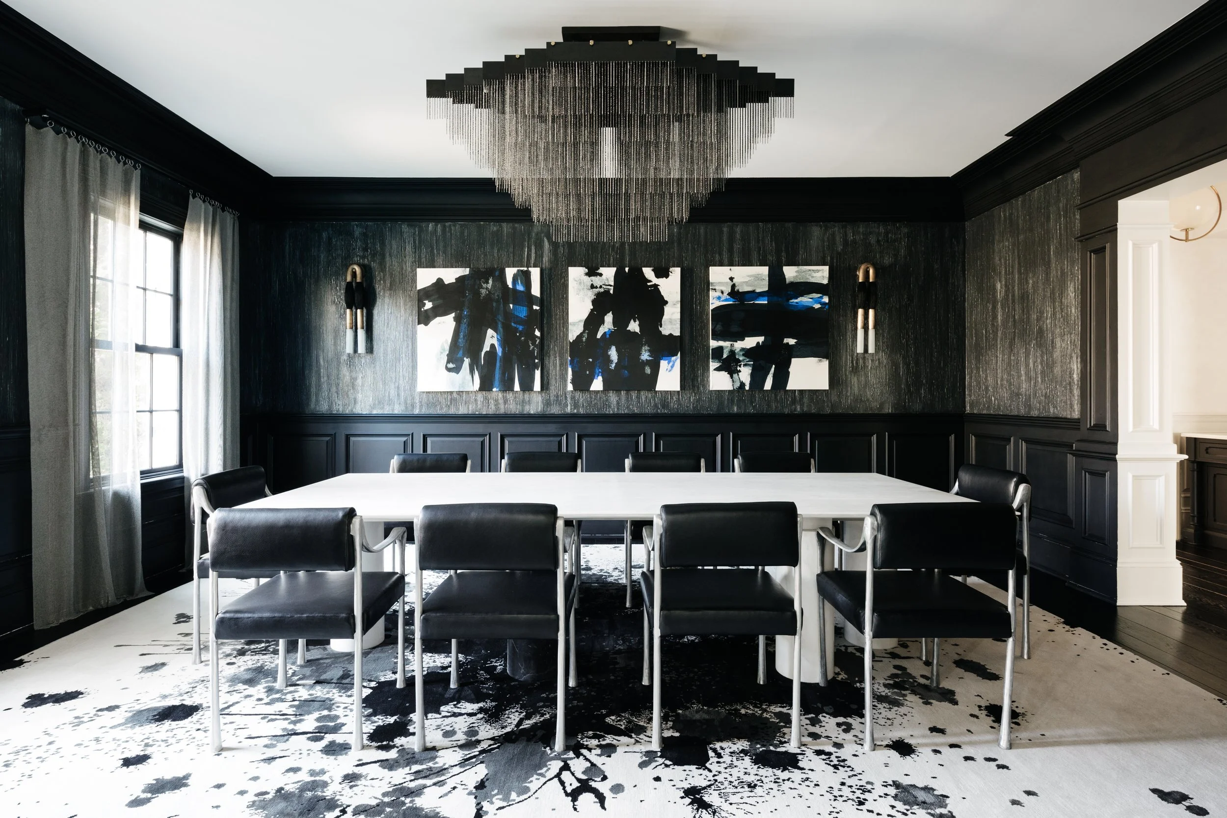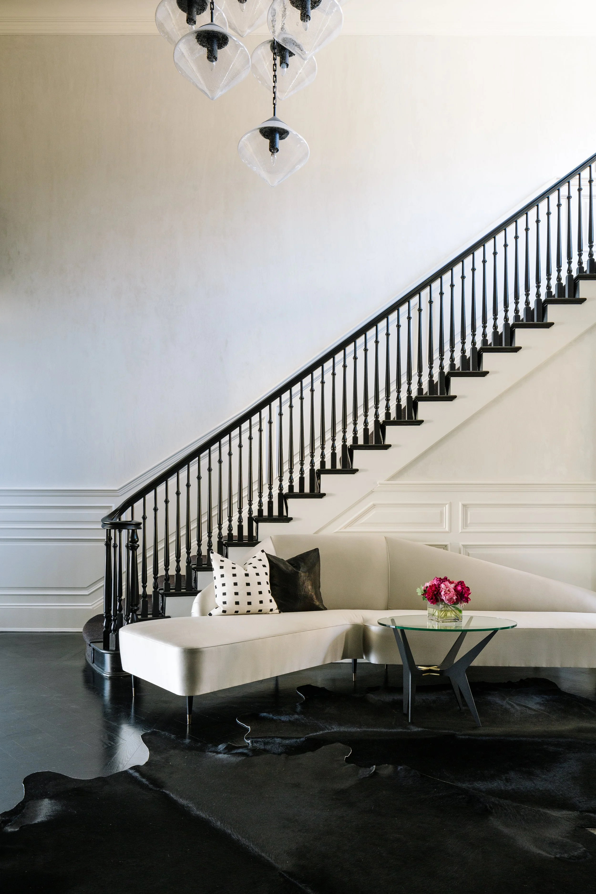 This project sets the tone for a full-home transformation rooted in a bold yet timeless aesthetic. We blended classic architectural elements—like panel molding and traditional stair details—with a modern, minimalist approach to furnishings and layout. A monochrome palette of black and white runs throughout the home, creating a strong visual identity while allowing for subtle shifts in mood from room to room. The entryway, pictured here, introduces this balance of structure and simplicity, setting the stage for a cohesive and elevated interior experience.