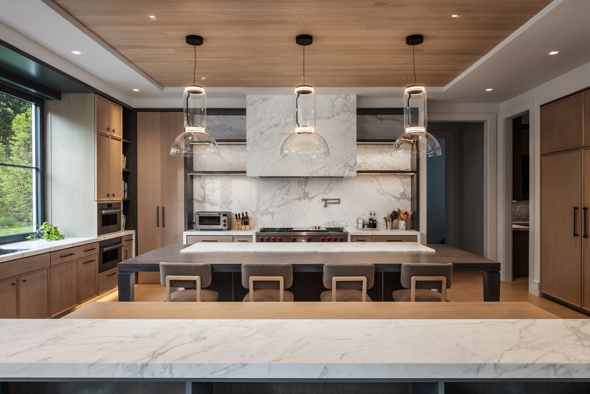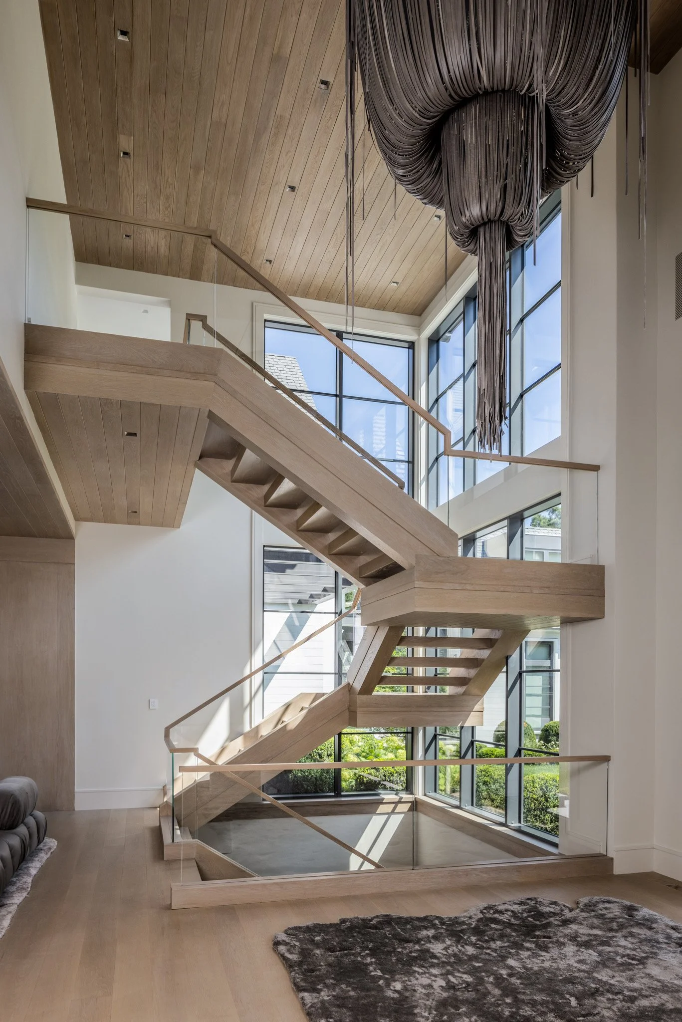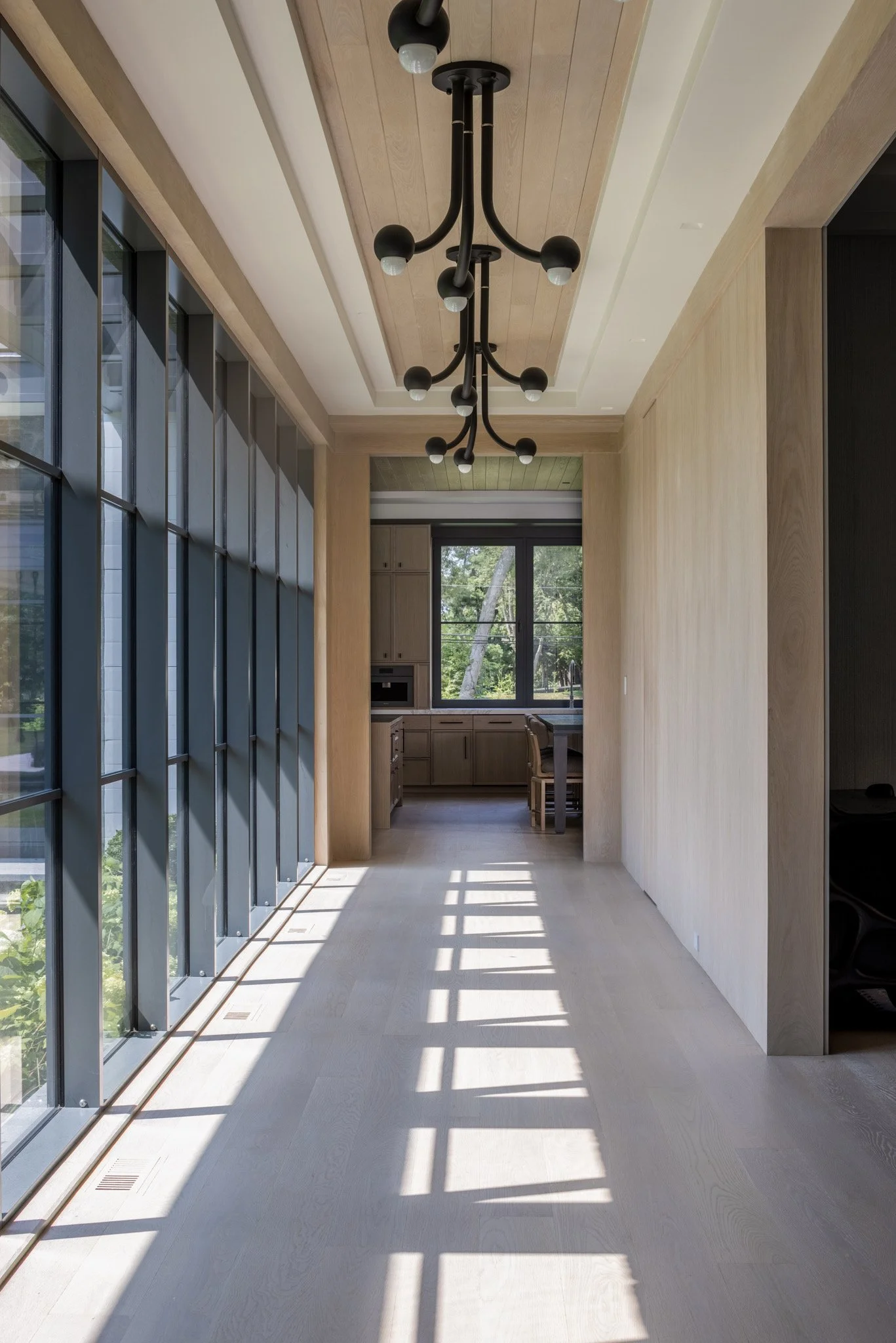 This Westport residence is a study in quiet luxury, where natural materials and architectural clarity shape a refined, livable environment. Expansive glazing draws the surrounding landscape inward, allowing light to move fluidly across warm wood surfaces and softly layered interiors. Sculptural lighting and custom millwork introduce moments of contrast, balancing restraint with intentional design detail. The result is a home that feels both grounded and elevated .. modern in execution, yet deeply connected to its setting.